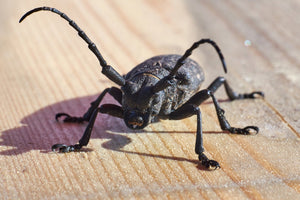 The Silent Destroyer Lurking in Our Homes: House Longhorn Beetle In the lush landscapes of the UK, where history whispers through the walls of its buildings, a silent destroyer works unnoticed, compromising the structural integrity of wooden constructions and threatening the heritage embedded within. This pest, known as the House Longhorn beetle (Hylotrupes bajulus), has emerged as a significant adversary to coniferous timber structures, from roof trusses and beams to floorboards and doors. At Platinum Chemicals Ltd, we stand at the forefront of remedial building solutions, armed with a deep understanding and an array of products to safeguard your property against such insidious threats. Understanding the House Longhorn Beetle (Hylotrupes bajulus): The battle against the House Longhorn beetle begins with knowledge. This pest, part of the Cerambycidae family, presents a formidable challenge to coniferous timber throughout the UK. What Do They Look Like? Adult House Longhorn beetles range in size from 8 to 25mm, boasting a blackish-brown coloration adorned with distinctive greyish-white patches on their wing covers. Another characteristic feature is the two shiny bumps found on the neck shield, setting them apart from other pests. However, the true threat lies not with the adult beetles but with their larvae. These larvae are pale cream, measuring 2 to 3 cm in length and 4 to 6 mm thick, their bodies marked by ring-shaped segments. Larvae (left) and Pupae (right) of House Longhorn Beetles Lifecycle and Breeding Habits The lifecycle of the House Longhorn beetle is marked by a brief adult phase, lasting just a few weeks during the summer. During this time, their singular focus is reproduction. Females lay eggs in fine cracks within wood, giving rise to larvae that bore into the timber, initiating a destructive residency that can last from 3 to 6 years, and in some cases, as long as 15 years. These larvae feed mainly on sapwood, weakening structures from within until they pupate and emerge as adults, ready to continue the cycle. Risks and Damage Caused by House Longhorn Beetles The larvae of the House Longhorn beetle carve extensive frass galleries within the wood, compromising the structural integrity of the infested timber. This damage is particularly insidious due to the larvae’s preference for attacking the inside of the timbers, leaving the exterior surface untouched and making early detection challenging. Often, the full extent of an infestation goes unnoticed until it’s too late, with beams or floorboards giving way under the strain. The hidden nature of these attacks exacerbates the threat posed by the House Longhorn beetle, making it a formidable enemy to homes and historical buildings alike. With structural integrity at risk, understanding the signs of infestation and the necessary steps for treatment and prevention becomes paramount. An Adult House Longhorn Beetle Identifying an Infestation The stealth with which the House Longhorn beetle invades and damages wooden structures makes early detection challenging but not impossible. Recognising the signs of an infestation is crucial for timely intervention, potentially saving significant structural components from irreparable damage. The most deceptive aspect of House Longhorn damage is the larvae’s preference for remaining inside the wood, leaving the exterior virtually untouched. Consequently, traditional signs of wood pest infestation, such as visible boreholes or sawdust-like frass, are often absent. However, vigilant property owners and professionals can look for more subtle indicators: Fine Cracks in Wood: The initial entry point for the laying of eggs. These cracks may appear more pronounced over time. Slight Bulging or Warping of Wood Surfaces: As larvae grow, their tunnels can cause subtle deformations in the wood. Hollow Sounds: Tapping on suspected timber can reveal a change in sound, indicating hollowed-out sections beneath the surface. It's worth noting that by the time these signs are noticeable, significant damage may already be underway. Therefore, consulting with a specialist, they can provide an expert assessment and recommend immediate steps for treatment. Close up Image of a Wooden Floor Board Plank Showing Extensive Damage (Exit Holes) Caused By Larvae Treatment and Prevention Strategies Once an infestation of House Longhorn beetle is confirmed, immediate action is necessary to mitigate damage and prevent further infestations. At Platinum Chemicals Ltd, we advocate for a comprehensive approach, combining treatment of affected areas with preventive measures to protect unaffected wood. Eradicating Infestation Permethrin or Boron-Based Wood Preservatives: The most common form of treatment, these preservatives are effective against larvae within infested timber. Applying these preservatives can kill existing larvae and protect the wood from future attacks. Heat Treatment: Exposing infested wood to high temperatures can eradicate larvae without the use of chemicals. This method requires specialised equipment and should be undertaken by professionals. Fumigation: For severe infestations, fumigation may be necessary. This involves enclosing the affected area and introducing a gas that kills the larvae. Like heat treatment, fumigation should only be performed by licensed professionals. Effective Spray Treatments are Available to Order From Our Woodworm & Rot Hub Page Preventative Measures Preventing House Longhorn beetle infestations is preferable to treating them. Some key strategies include: Regular Inspections: Especially in older buildings or those with previous infestations, periodic checks by professionals can catch new infestations early. Chemical Treatments: Applying wood preservatives, such as the ones mentioned above, to at-risk areas can deter female beetles from laying eggs. Physical Barriers: Sealing cracks and crevices in wood can prevent access for egg-laying. Platinum Chemicals Ltd: Your Partner in Co