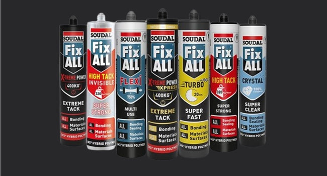 Soudal Fix ALL products are the perfect answer to all interior and exterior bonding, filling and sealing jobs. Soudal Fix ALL is suitable for use on porous, non porous, wet and humid surfaces, even underwater!