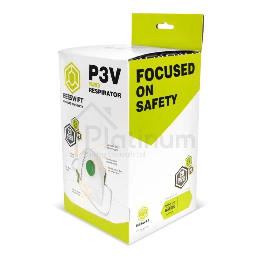 A) The Beeswift P3 Fold Flat Valved Mask is a maintenance-free, fold-flat disposable respirator designed to protect the wearer from fine toxic dusts, metal fumes and water-based mists during demanding tasks. Built around multi-layer filter media and a smooth polypropylene outer, it offers high filtration performance while keeping lint and loose fibres to a minimum for a clean, professional feel. The contoured body and adjustable nosepiece help achieve a consistent face seal on a wide range of facial shapes, while the integrated exhalation valve vents warm, humid air to keep breathing cooler on longer jobs. Because it conforms to EN 149:2001 + A1:2009 at FFP3 NR V, the Beeswift P3 Fold Flat Valved Mask is suitable for high-hazard environments such as hardwood machining, composites work, welding and general metal fabrication. It arrives ready to use, folds flat for hygienic storage, and is intended for single-shift wear in line with site risk assessments.