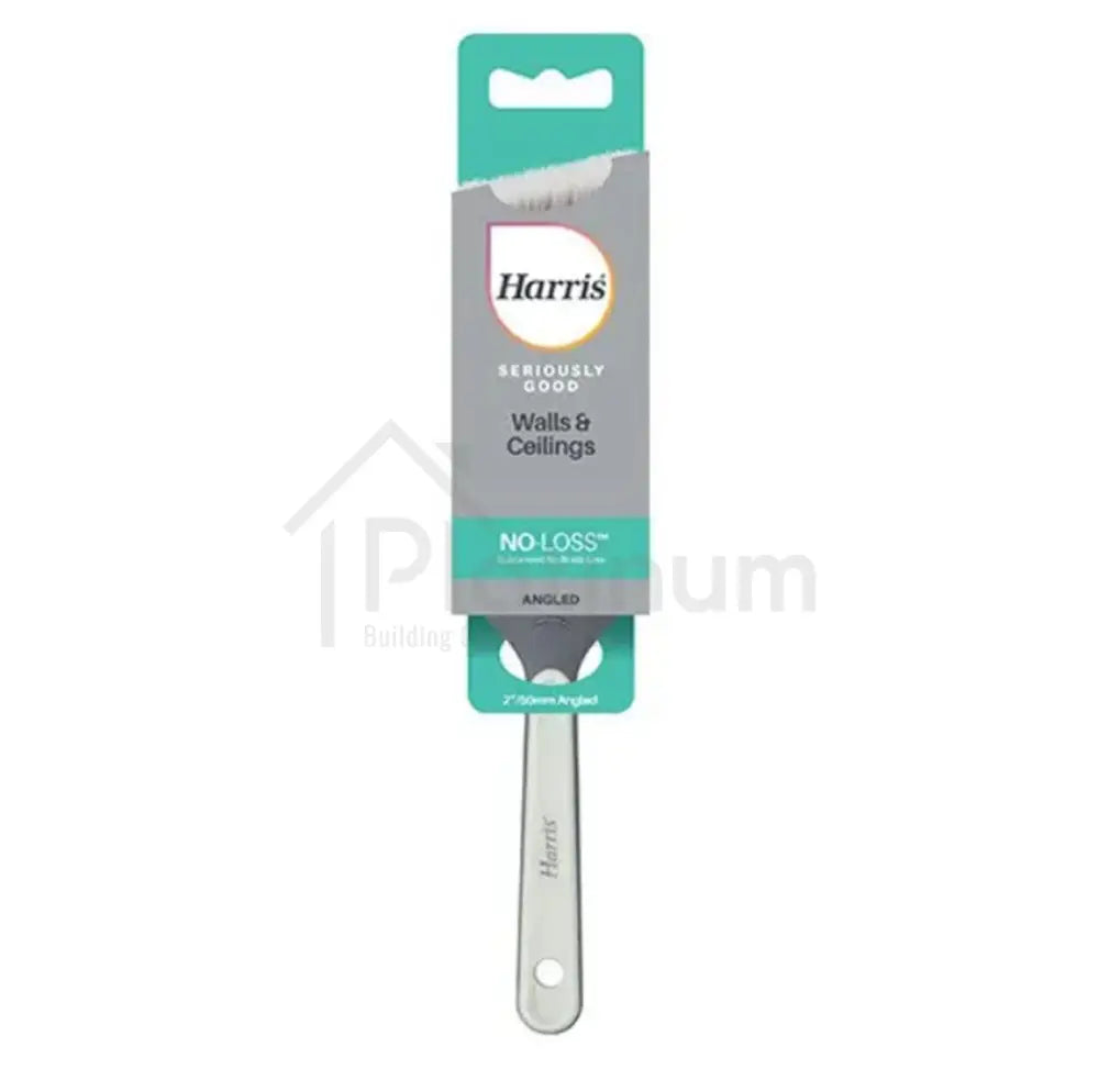 A) The Harris Seriously Good Walls & Ceilings Angled Paint Brush (2”) differs from regular flat brushes in both design and performance. Its angled head allows for easier access into tight spaces and corners, while also enabling better visibility and control when cutting in along straight lines or curved edges. Unlike cheaper brushes, it features Harris’s NO-LOSS technology, which guarantees that bristles won’t shed during use—a major advantage when aiming for a smooth, clean finish. The fine synthetic filaments are densely packed to hold more Emulsion Paint and release it evenly, helping to reduce brush marks and ensure full coverage. Combined with an ergonomic handle for better grip and control, these features make it a superior choice for accurate interior painting tasks.