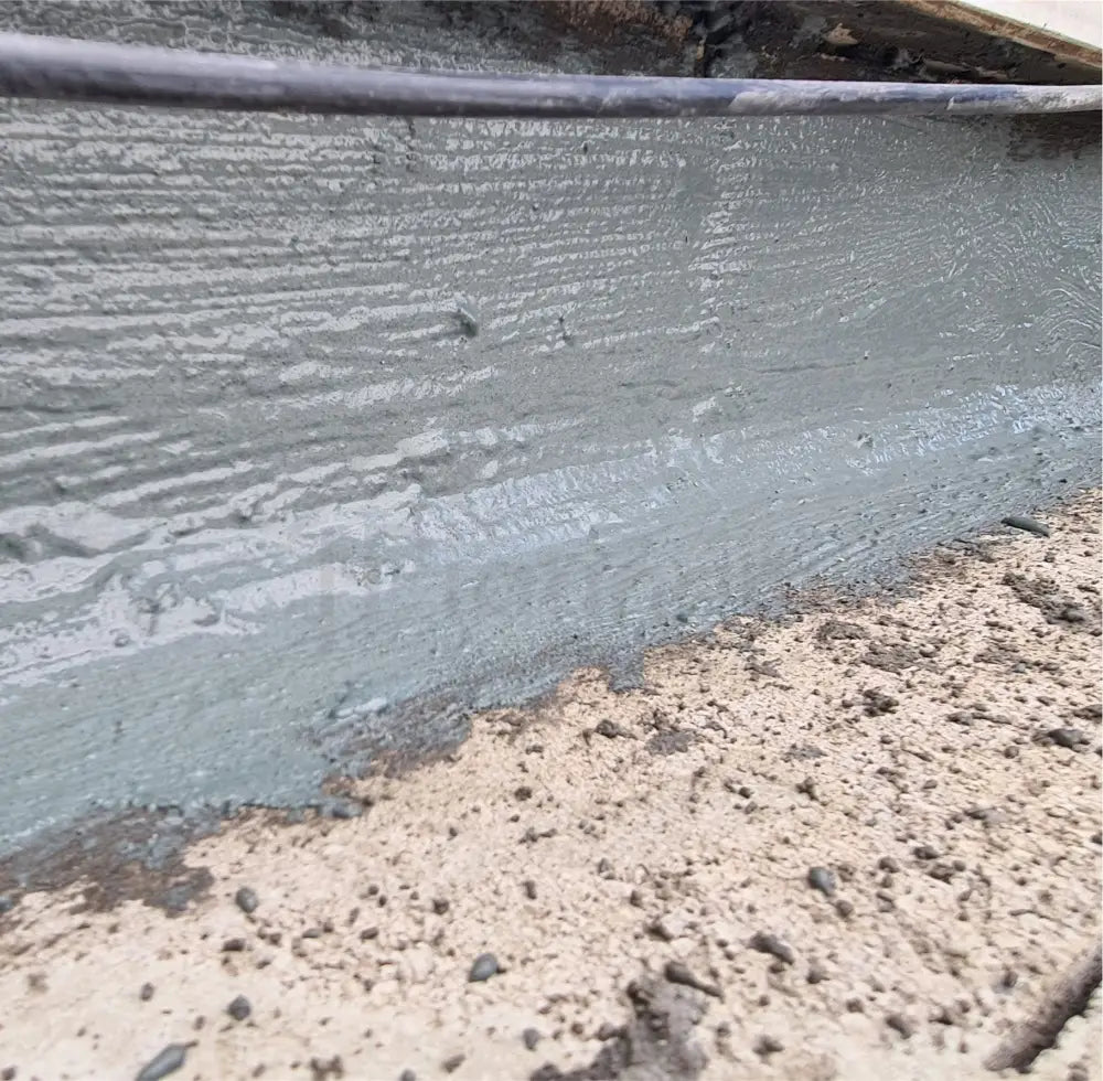If there is any exposed steel present, apply two coats of suitable corrosion inhibitor to the exposed steel, by brush. Remove all loose material and surface latencies, i.e. dust, oil, grease, corrosion and organic growth, preferably by using wet grit or water blasting techniques. The strength of the concrete sub-base must be a minimum of 25N/mm².