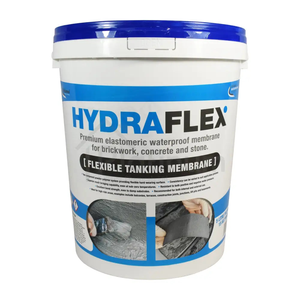 HydraFlex Tanking Slurry is a two-component FLEXIBLE Coating made of a cementitious powder and a high concentration liquid polymer which, when mixed together provides, permanent waterproofing for concrete and masonry. HydraFlex Tanking Slurry also provides a protective waterproof barrier which can bridge cracks in the substrate so the coating remains water tight.