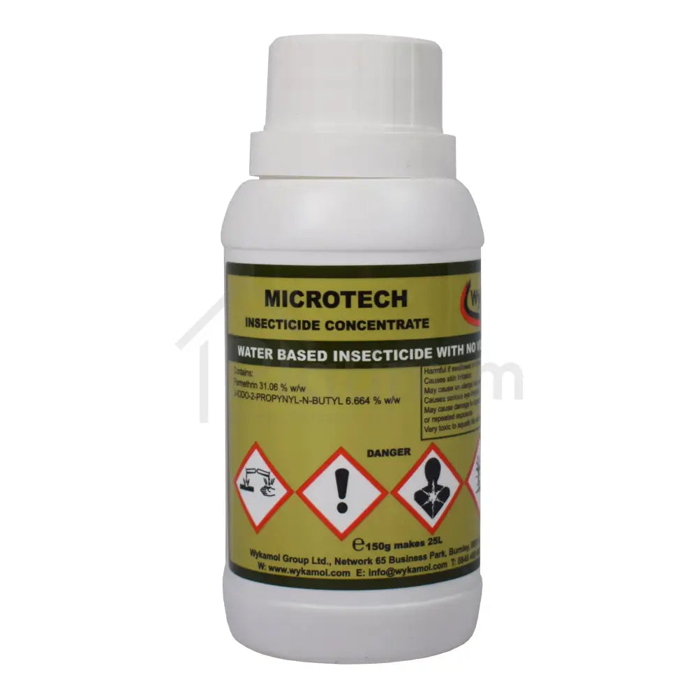 Prior to using Wykamol Microtech Insecticide, it is essential to take appropriate health and safety precautions. Personal protective equipment (PPE), including gloves, safety goggles, and protective clothing, should be worn during application to prevent skin and eye contact. A face mask should be used in enclosed or poorly ventilated spaces to avoid inhalation of mist or vapours. Standard hygiene practices should be observed, such as washing hands and exposed skin after use and avoiding eating, drinking, or smoking during application. Always consult the product’s safety data sheet before commencing work.